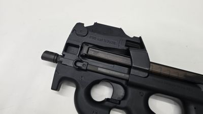 FN PS90 (5.7x28mm): Tactical bullpup carbine with 50-round magazine.